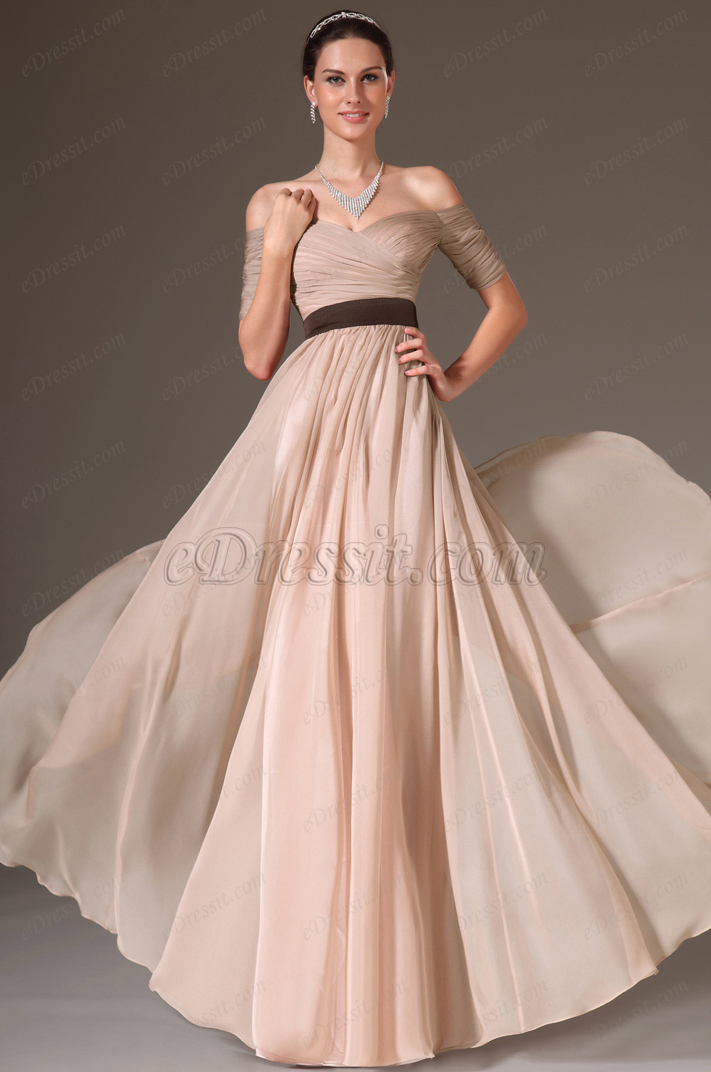 Elegant chiffon skirt flows beautifully from the empire waist to the floor. Wear this